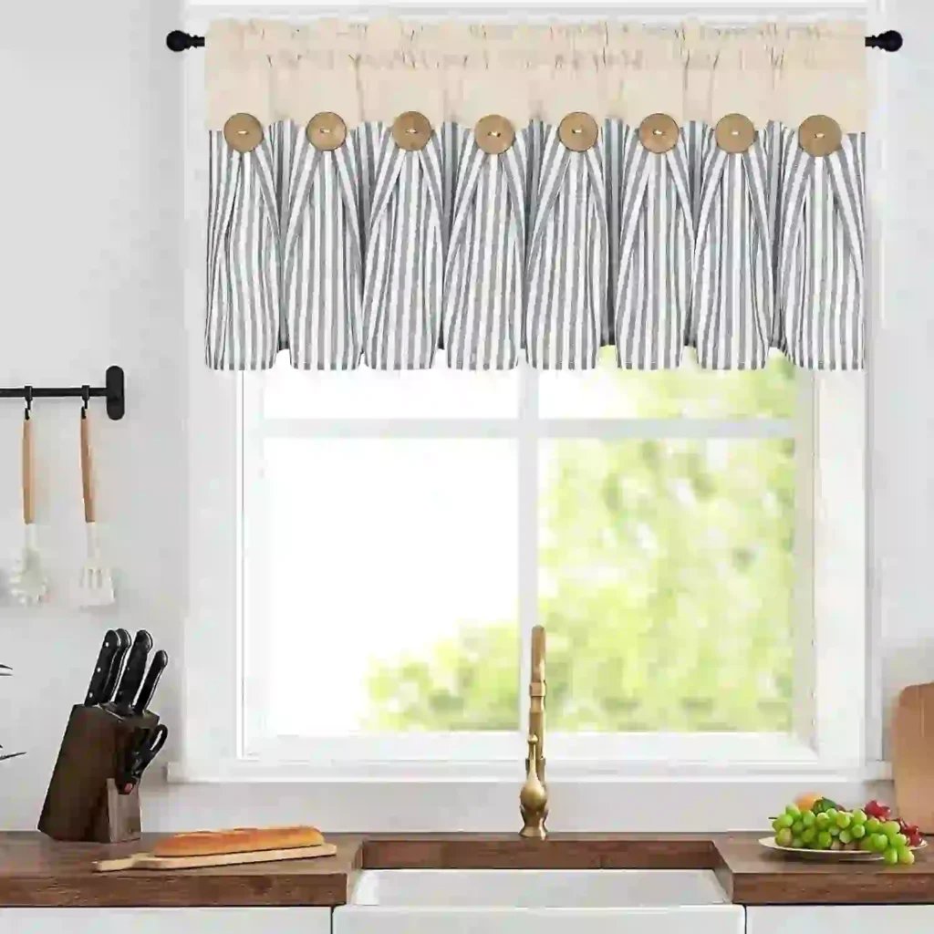 For a touch of rustic charm, the Bleum Cade Cotton Linen Farmhouse Valance is a perfect choice.