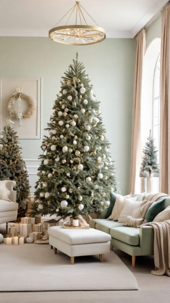 If you prefer a calm and elegant look, go for a neutral holiday color palette. Whites, soft greens, and hints of gold can create a peaceful and cozy feel. This subtle approach keeps your living room looking festive without feeling overwhelming.