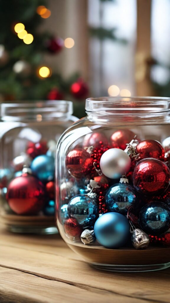 You don’t always need to buy new decorations each year. Reuse old ornaments by placing them in bowls, vases, or glass jars for an easy and creative display. It’s a smart way to make use of what you already have while giving your decor a fresh look.