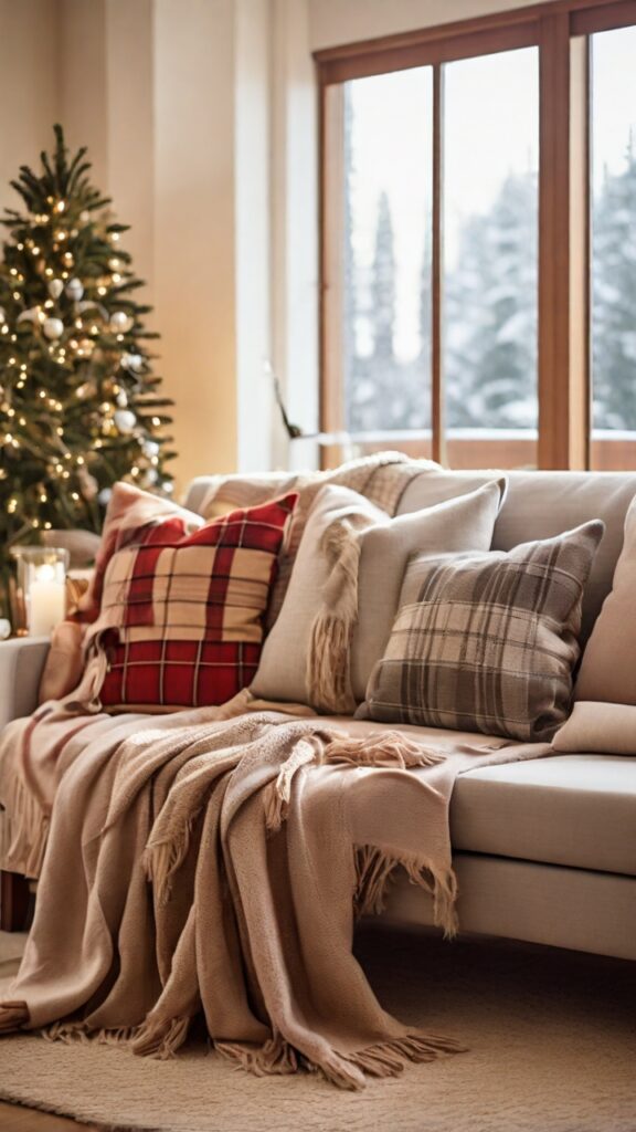 Plaid is a timeless pattern that instantly gives a Christmas feel. Add plaid throws, pillows, or even a small rug to your living room for warmth and color. It’s a simple update that brings comfort and that classic holiday charm.