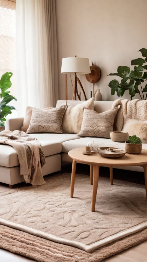 Adding layers of texture is one of the easiest ways to make your living room feel cozier. Try placing a smaller patterned rug over a larger neutral one to create depth and comfort. It instantly makes the space look more inviting while keeping your feet warm during the colder months.