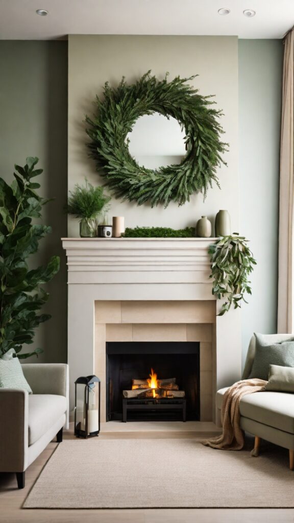 Wreaths don’t have to stay on the front door. Hang them on mirrors, windows, or even above your fireplace for a simple way to bring greenery indoors. Choose styles that match your decor, whether that’s traditional pine, frosted branches, or minimalist eucalyptus.