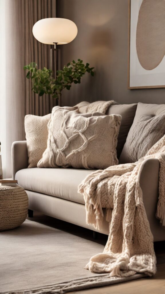 Soft textures make all the difference when it comes to cozy decor. Add a chunky knit throw or a fluffy blanket to your couch or accent chair. It not only makes the space feel warmer but also adds a touch of texture that feels perfect for the holidays.