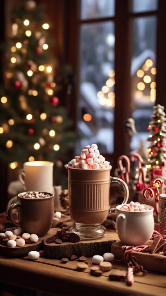 Create a small hot cocoa station in a corner or on a side table for a cozy touch. Set out mugs, marshmallows, and candy canes in glass jars for an inviting setup that everyone will enjoy. It’s a simple way to add warmth and make your living room feel even more welcoming during the holidays.