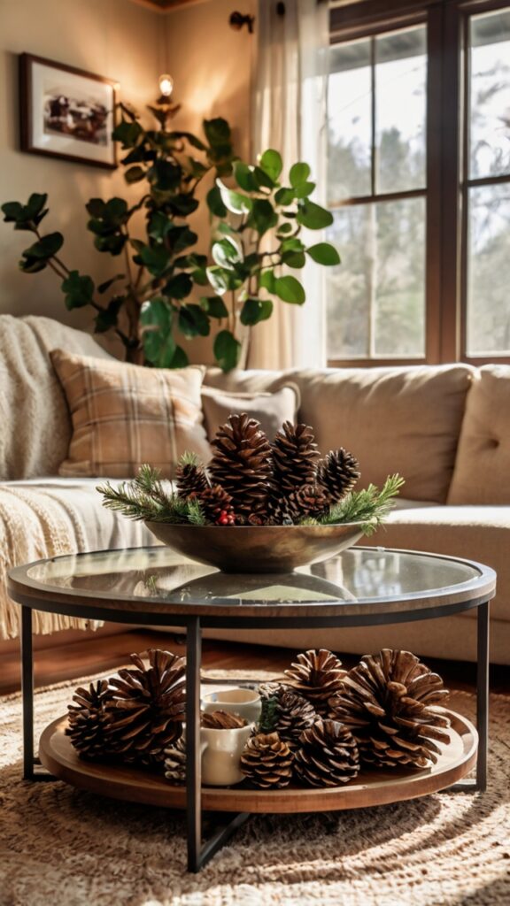 Natural elements like pinecones, branches, and berries can bring rustic charm to your decor without costing anything. Collect a few from your backyard or a park, then place them in bowls, vases, or along shelves. They add texture, color, and a natural holiday feel to the room.