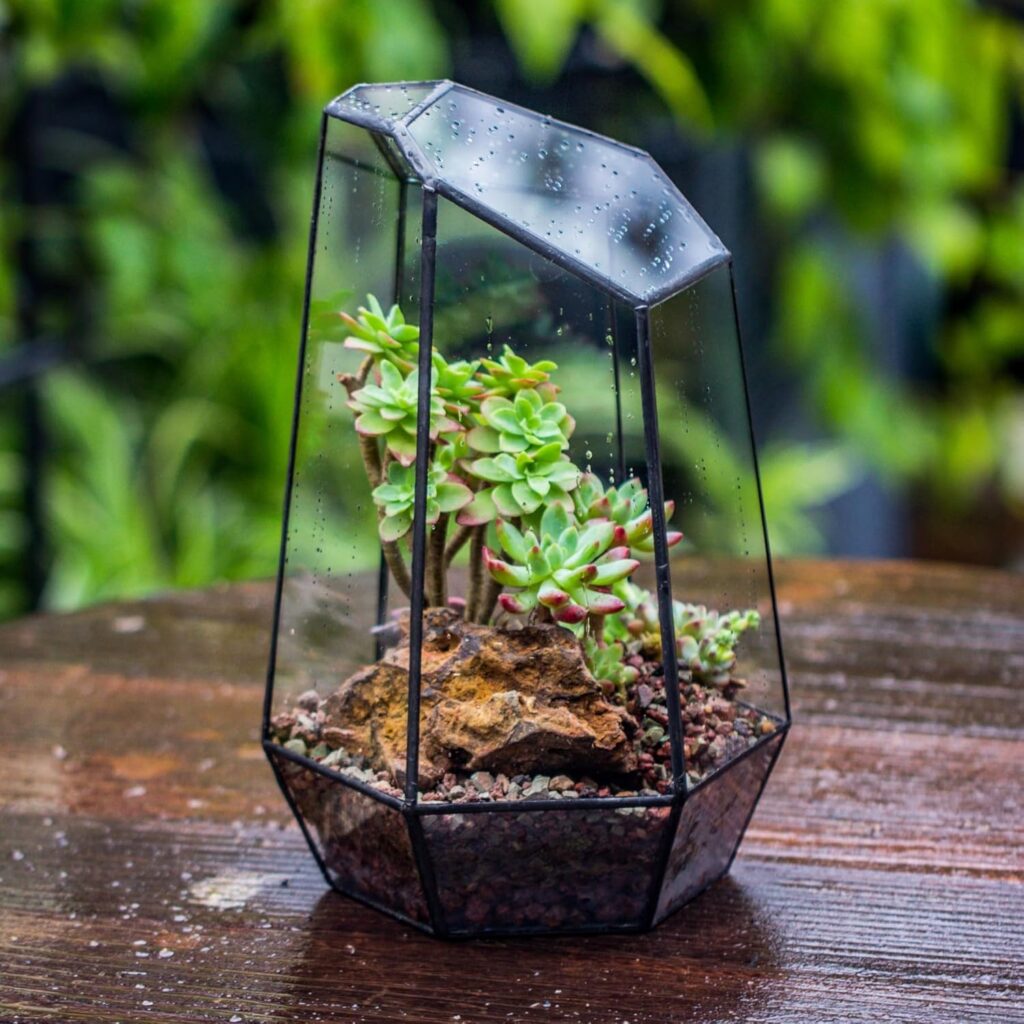 Add a layer of soil and carefully place mini succulents, moss, or air plants inside. To make it more eye-catching, use colored sand to create patterns or add tiny figurines like animals or fairy houses. This compact garden not only adds a refreshing touch to your space but also serves as a conversation starter. It’s the perfect blend of creativity and nature in one elegant setup.