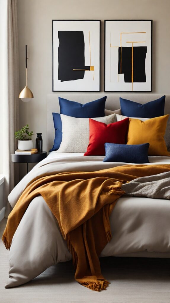 Then add pops of color with bold accents like red, mustard, or cobalt blue. A bright throw pillow, a colorful rug, or even one striking piece of wall art can instantly bring city energy into your space without making it feel too busy.