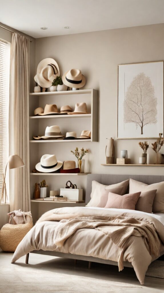Display hats, sneakers, or handbags on open shelves or wall hooks to create a setup that feels natural and stylish. It adds personality while keeping your room visually interesting. This approach is perfect for anyone who sees fashion as part of their lifestyle.