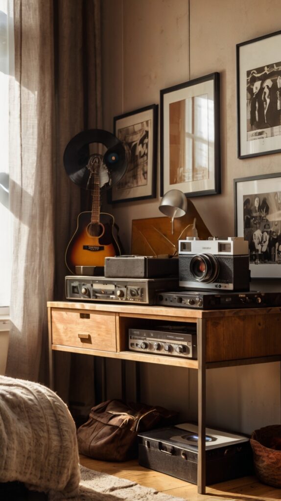 Add details that show your personality, like posters of your favorite bands, framed records, or a vintage camera collection. These small touches make the space feel authentic and lived-in rather than styled for show.