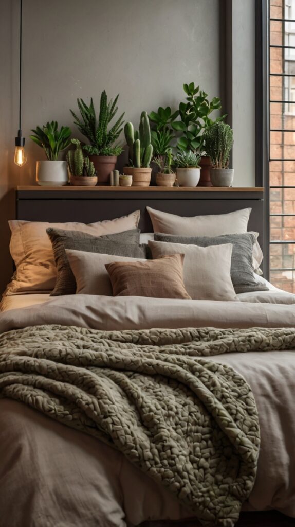 A touch of greenery can make any urban space feel more inviting. Add hanging plants, succulents, or faux vines to soften the rough edges of industrial decor. Plants bring a bit of life and color, creating that “city meets nature” balance that feels fresh and calming.
